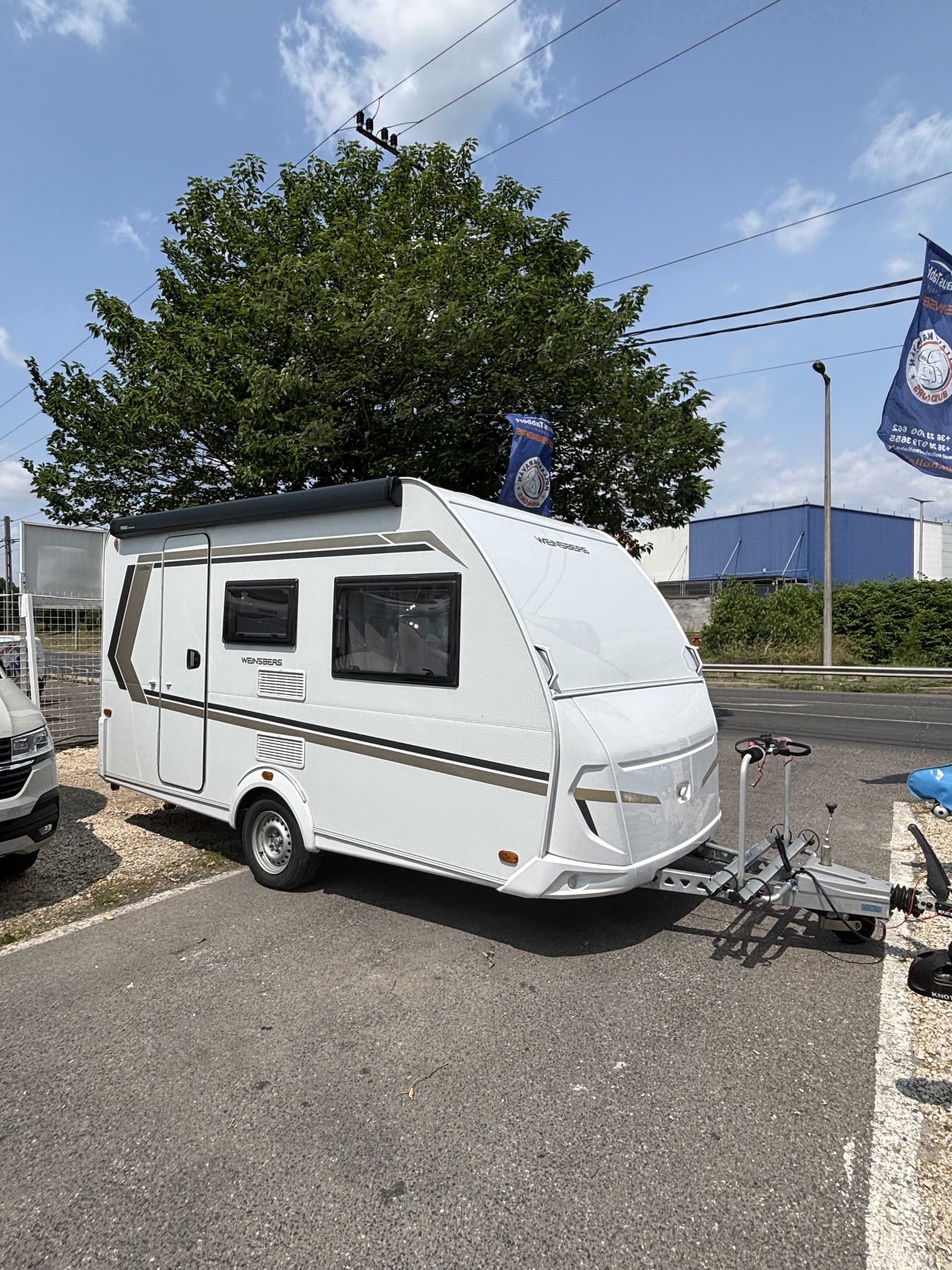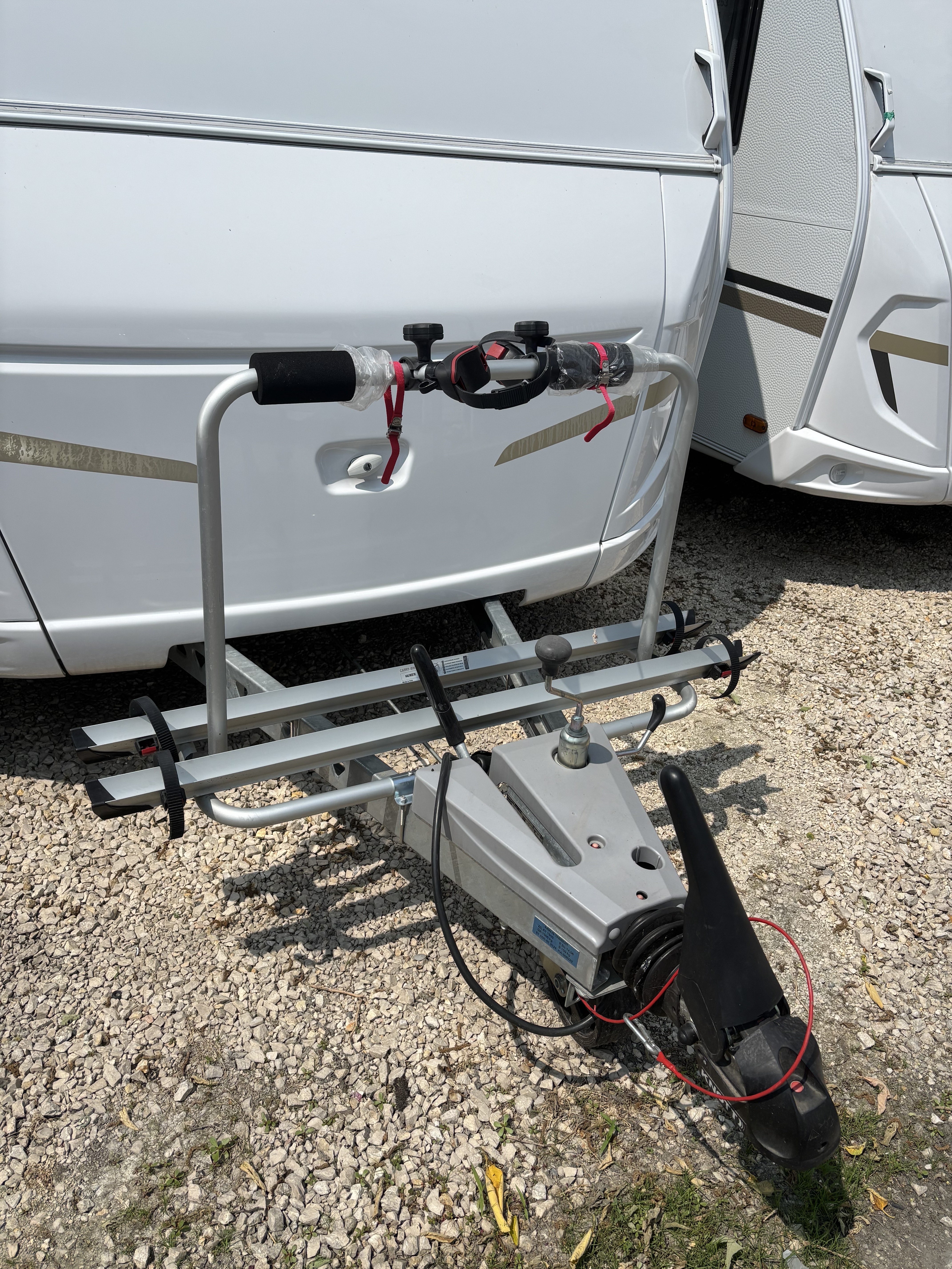 Mosogató, hűtő, tűzhely, 12V-os körfűtés, beépített mosdófülke zuhanytálcával és beépített bio-Wc-vel, kombirolók, szúnyoghálós ajtó, hideg-meleg vízrendszer, 45 l-es beépített víztartály, 25l-es mobil szennyvíztartály, panoráma tetőablak, stabilizátoros vonófej, 2 db-os első kerékpártartó, omnisztor