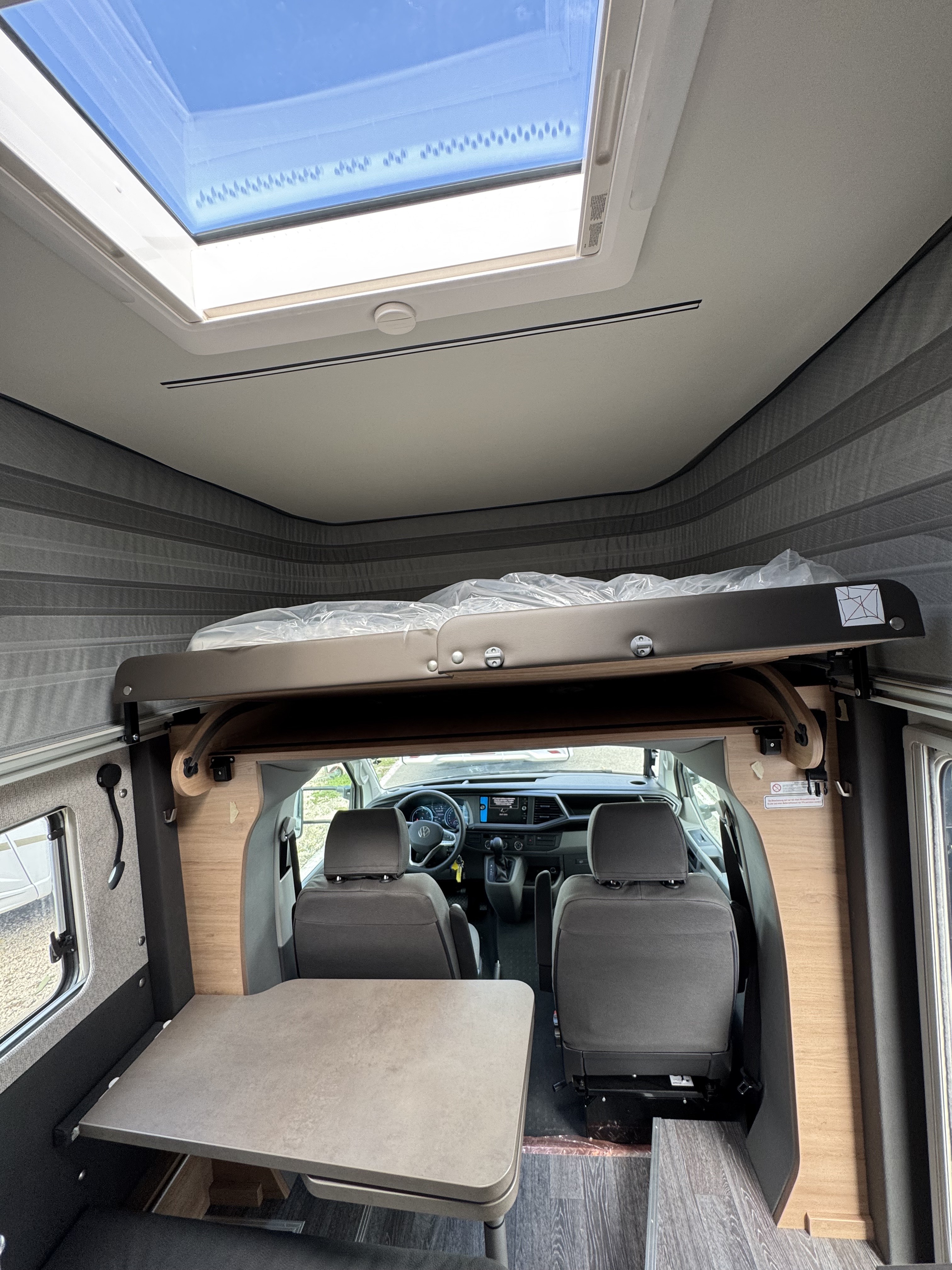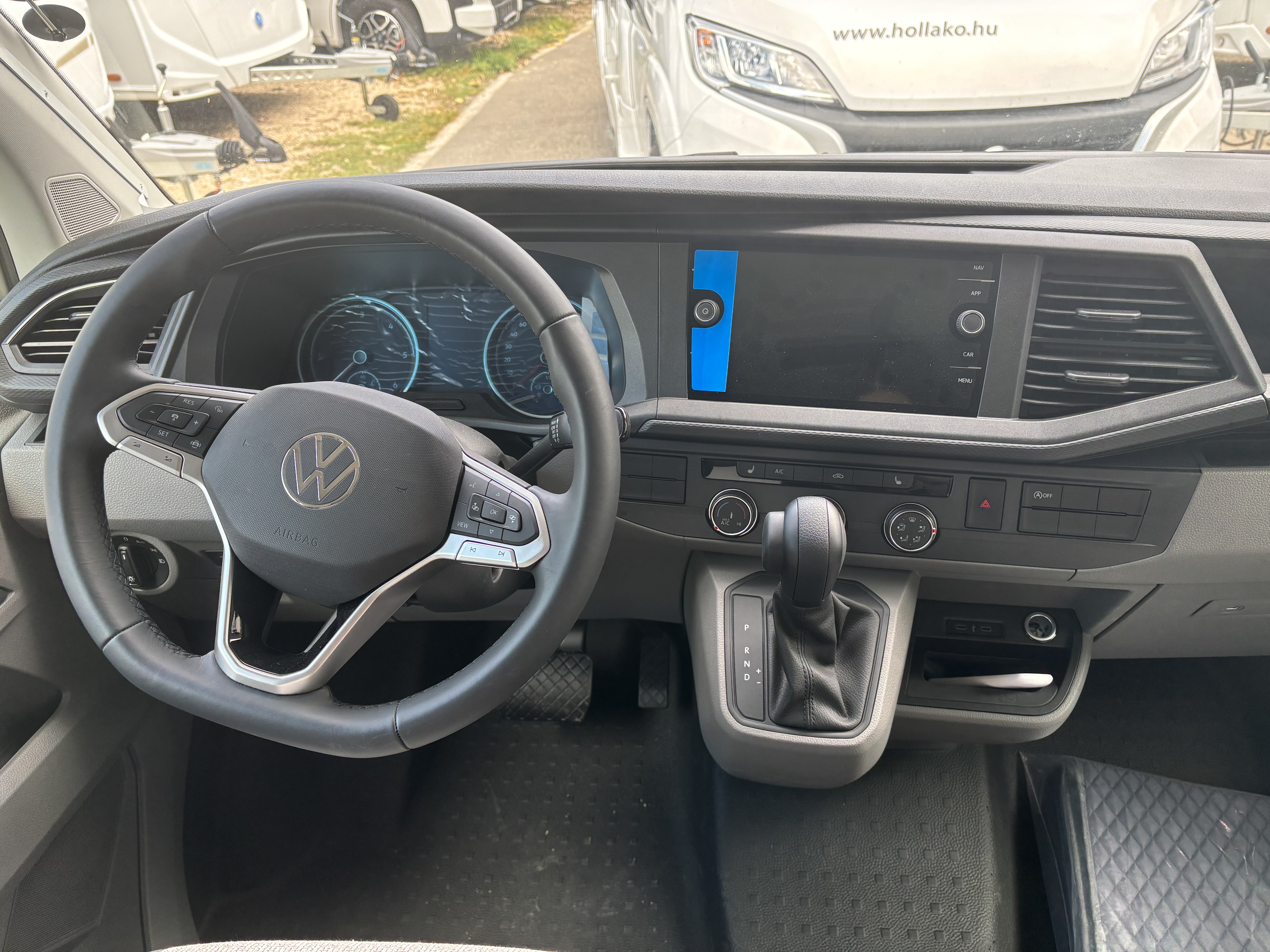 VW T6.1 3 500 kg, 110kW/150 LE, 7 sebességes automata váltó, dízelmotor, start-stop rendszer , személyek száma: 4 fő, fekvőhelyek száma: 4 fő, manuális autós klíma, tempomat, ABS, sávtartó, visszagurulás gátló, indításgátló, szervokormány, központi zár, autómata távfény kapcsoló, automata fényszóró magasság állítás, központi fejegység (AM/FM rádió, GPS navigációs rendszer, tolatókamera), USB port, elektromosan állítható visszapillantó tükrök, elektromos ablakok, vezető- és utasoldali légzsák, ülésfűtés, fűthető tükrök, forgatható vezető- és utasoldali ülés, kartámaszok, kombirolók, szúnyoghálós ajtó, hátsó panoráma tetőablak, Dometic 1500 W.os manuálís klíma, ventillátoros tetőablak