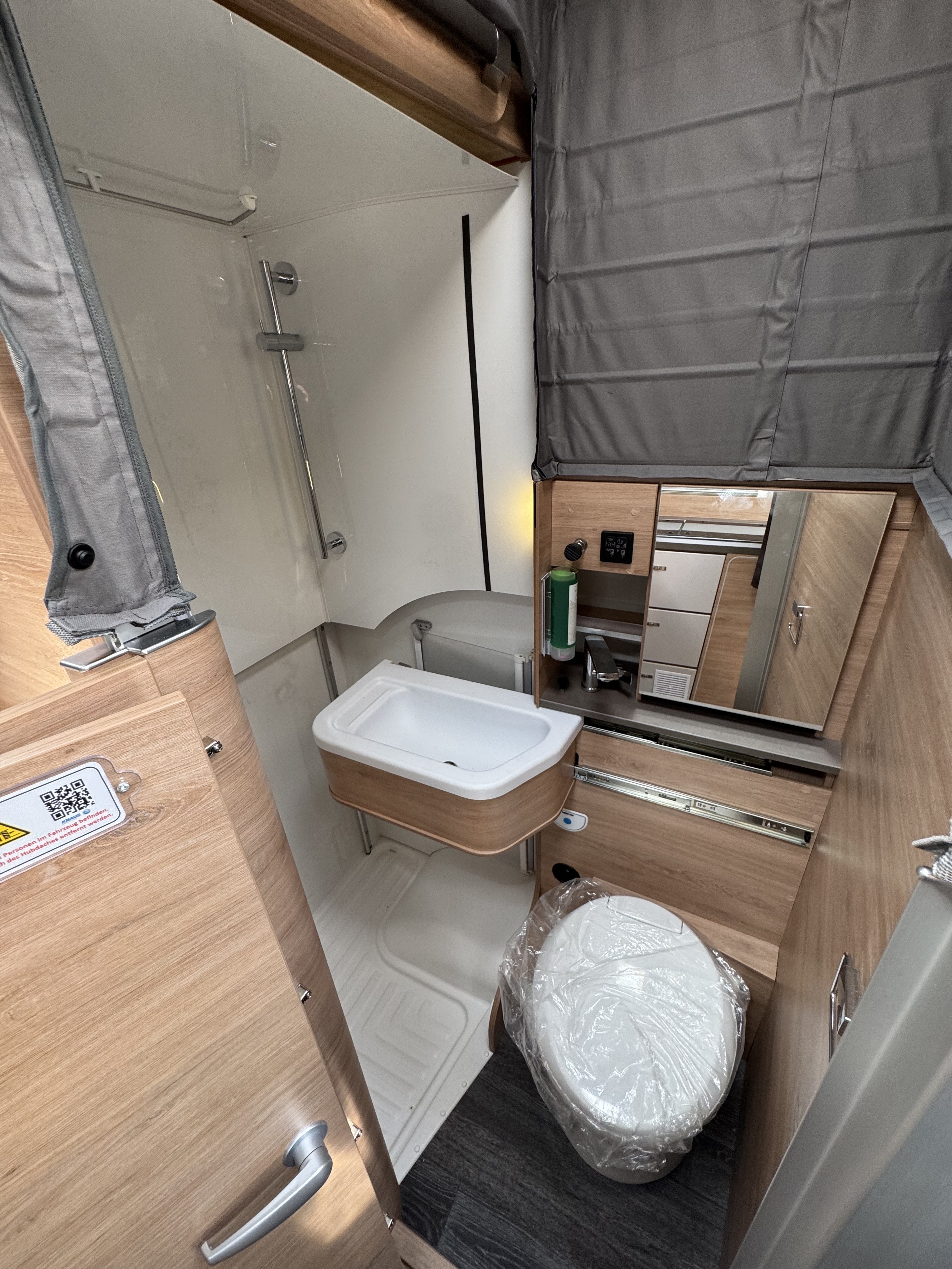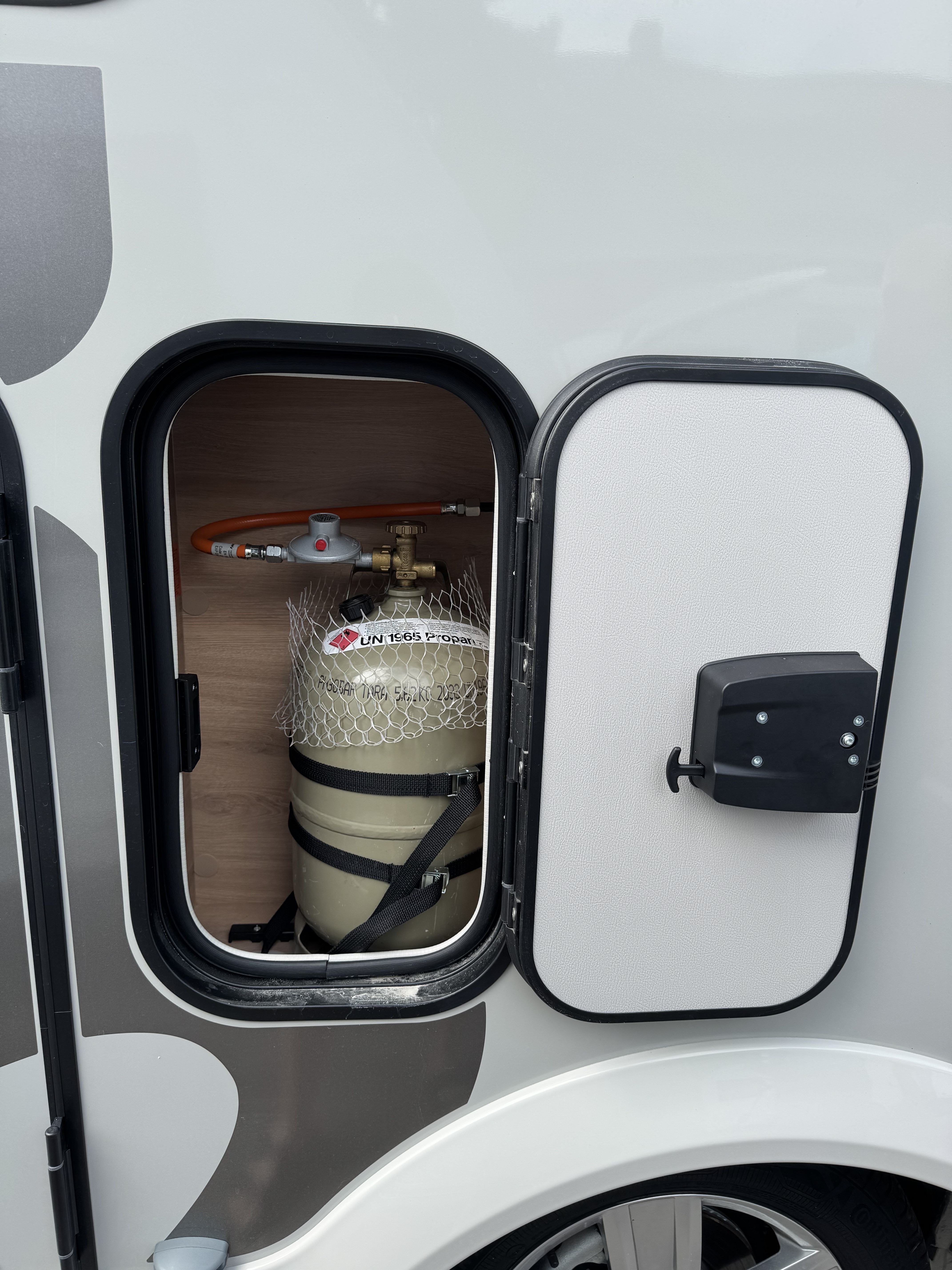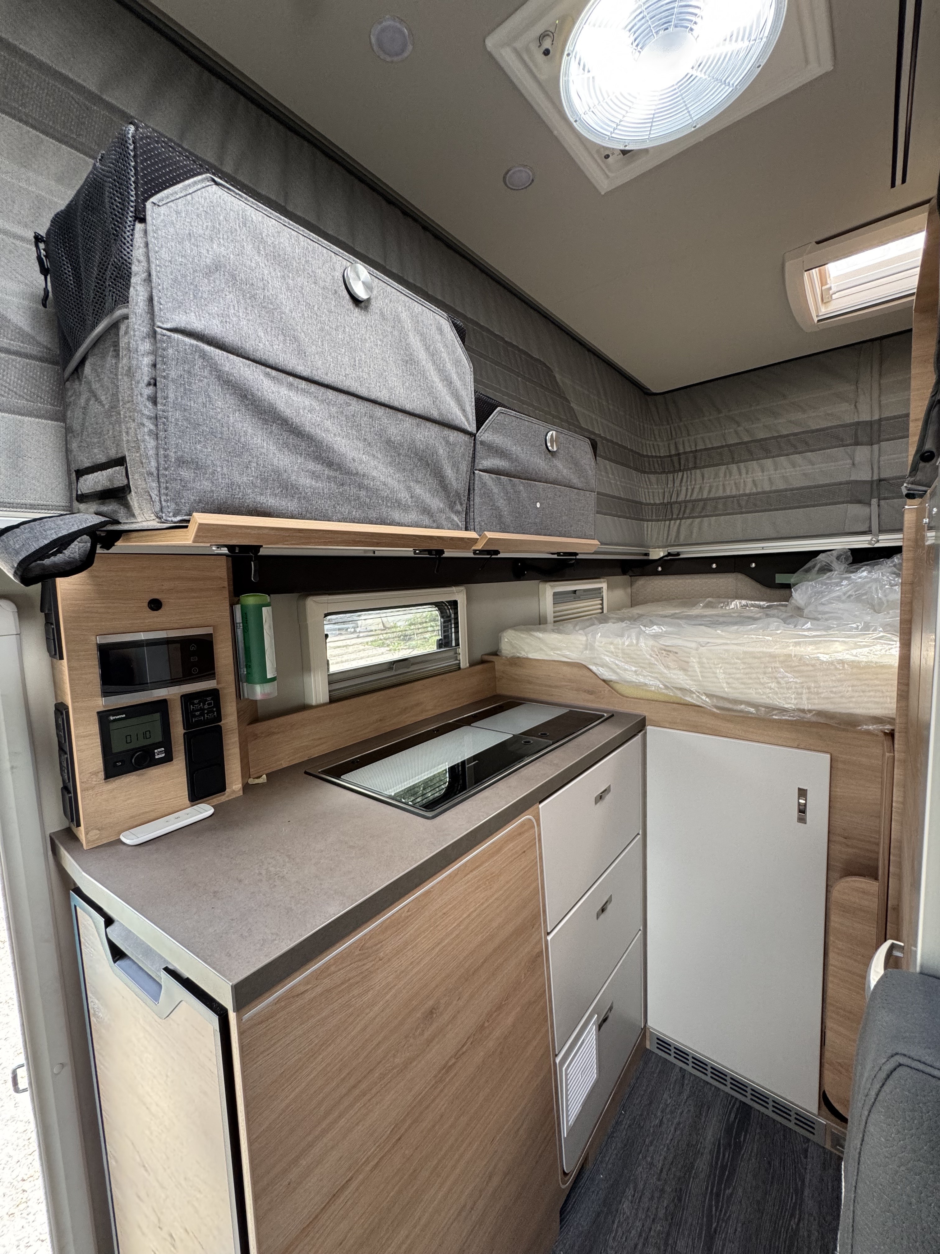2 db fedélzeti akkumulátor, Truma iNet-System központi vezérlő egység, ledes dekorvilágítás, akasztós szekrény, hátsó tárolórész, sötétítő a szélvédőn és első ablakokon, ventillátoros tető