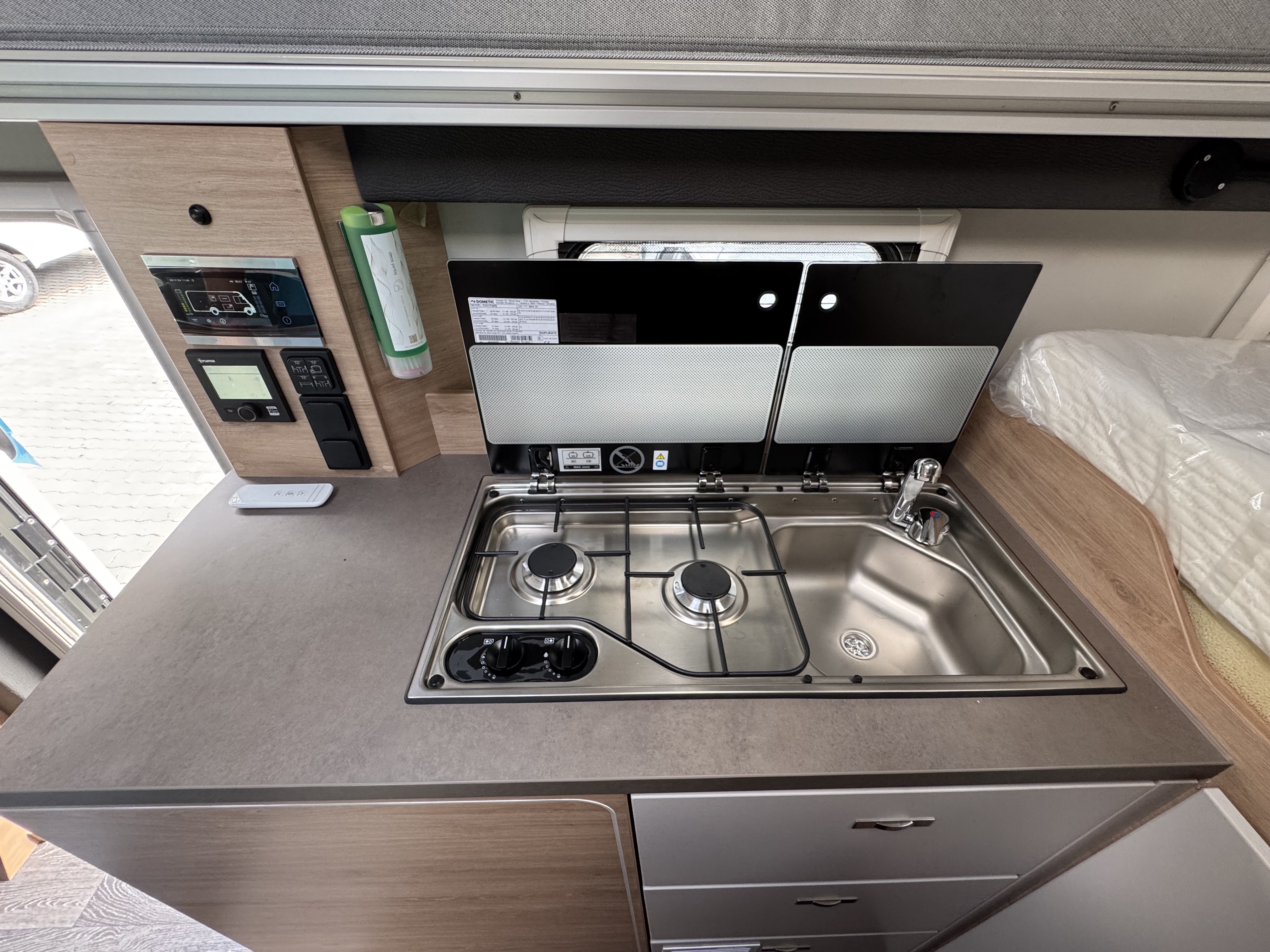 könnyűfém felni, kinyitható tető (kinyitott állapotban a magasság 3 méter, lecsukott állapotban 2,5 méter), Thule omnistor, vontathatóság 750/1720kg, 2 db-os hátsó kerékpár tartó, elektromos lépcső, mosogató, 90 literes hűtő, tűzhely, Truma Combi 4 dízel fűtés,100l beépített víztartály, 75l szennyvíztartály, mosdófülke beépített bio-Wc-vel és zuhanyzóval,